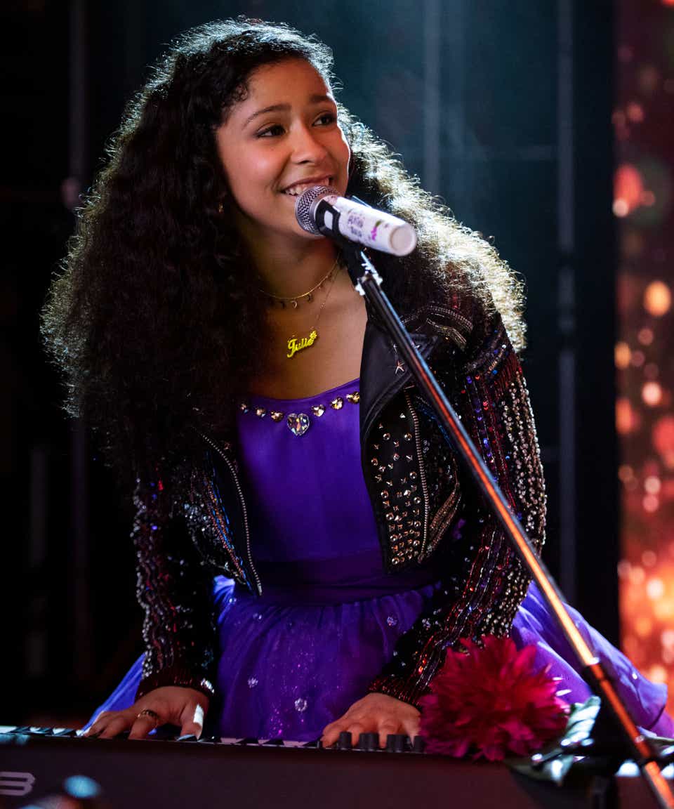 There’s little costume designer soyon an wouldn’t do to achieve the perfect look. Julie's lightning bolt sequin moto jacket on julie and the phantoms.